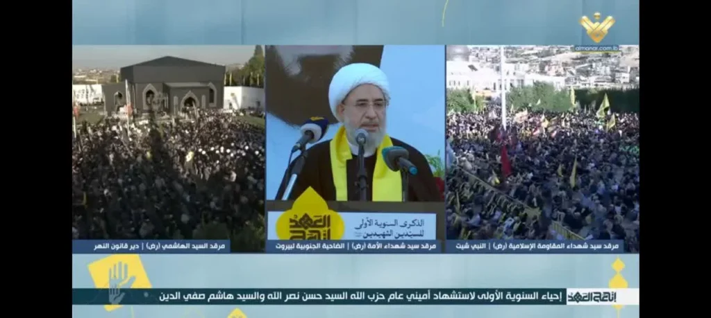 ◻️ این مراسم با حضور مقامات دینی، سیاسی و فرهنگی از لبنان و کشورهای مختلف جهان در جوار مزار شهید نصرالله در بیروت برگزار شد.